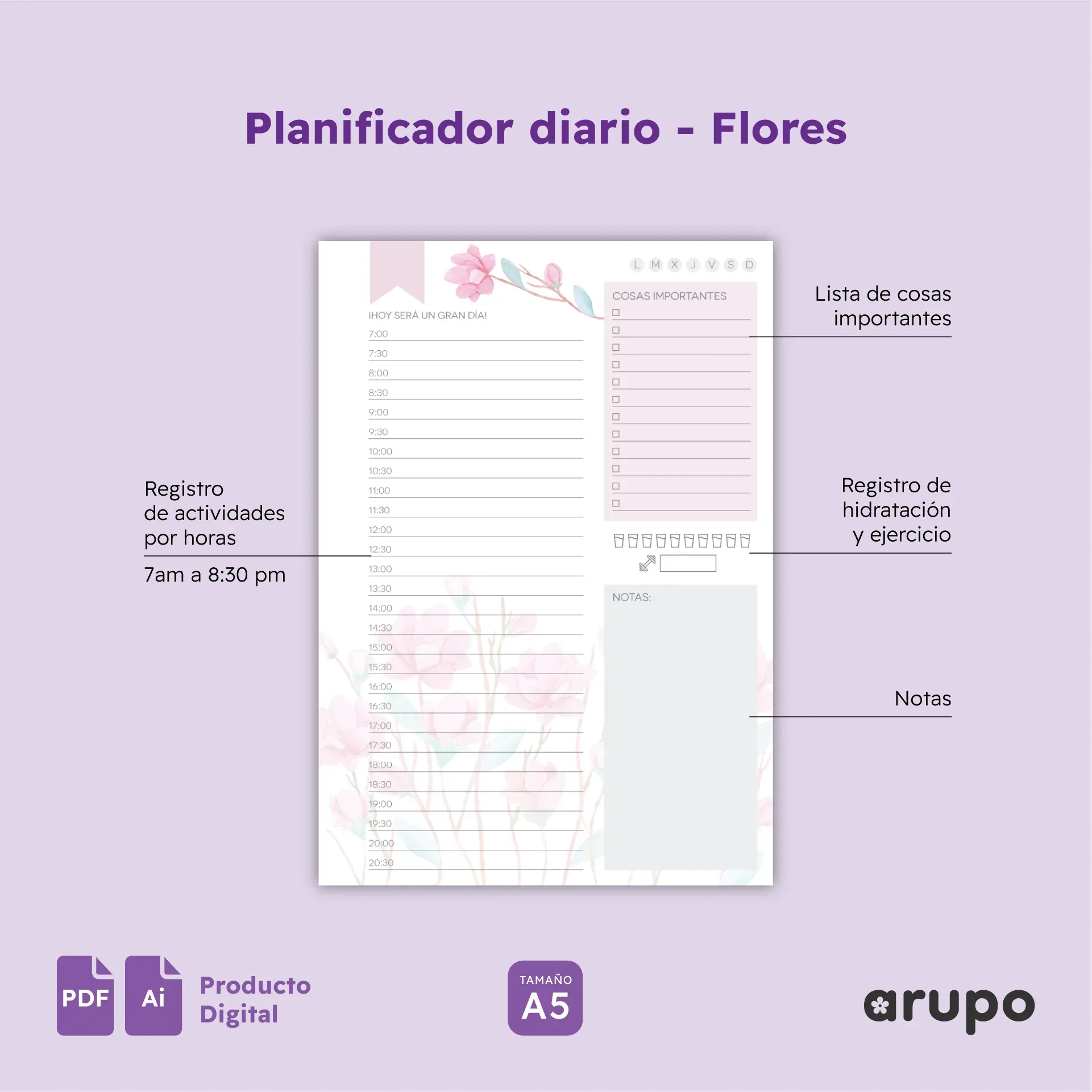 Diseño Planificador Diario - Flores